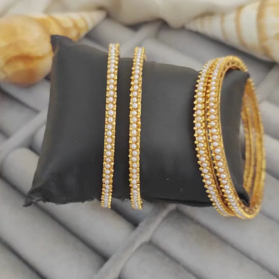 Antique Designer High Gold Polish Fancy Full Stone Party wear 4 Bangles Set