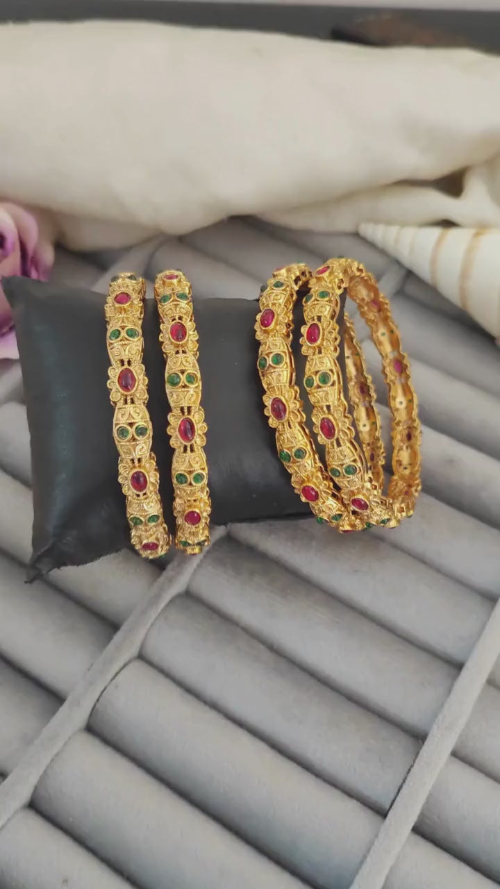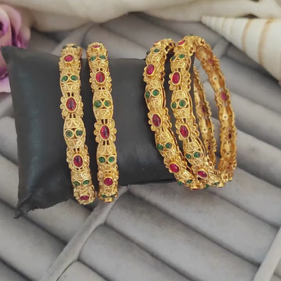 Antique Full Stone High Gold Polish 4 Bangles Set