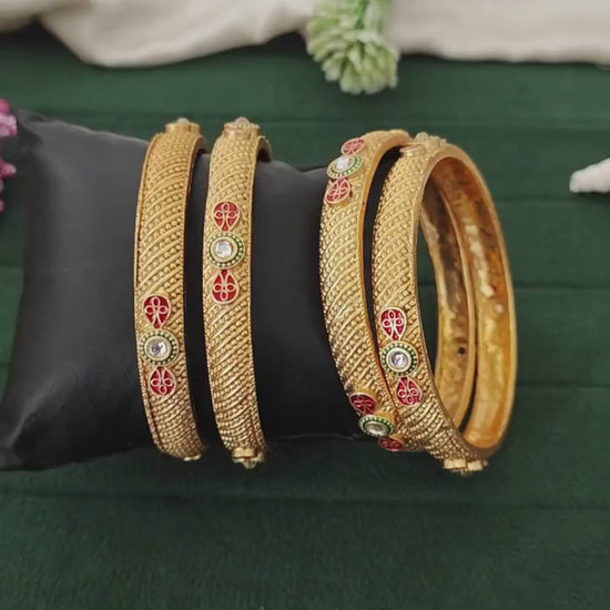 Antique Rajwadi Polish Full Stone 4 Bangles Set