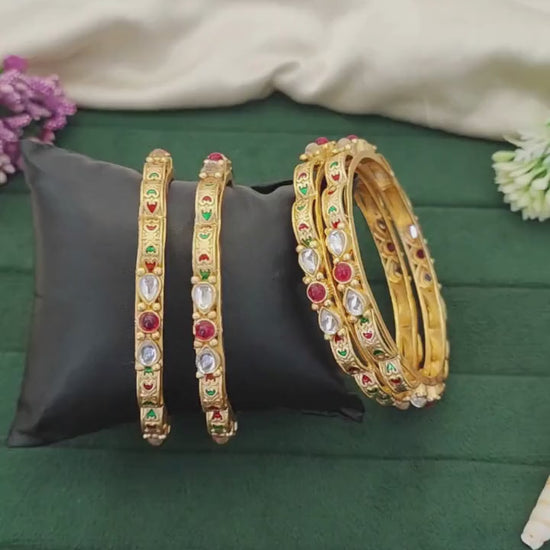 Antique Rajwadi Polish Full Stone Party Wear 4 Bangles set