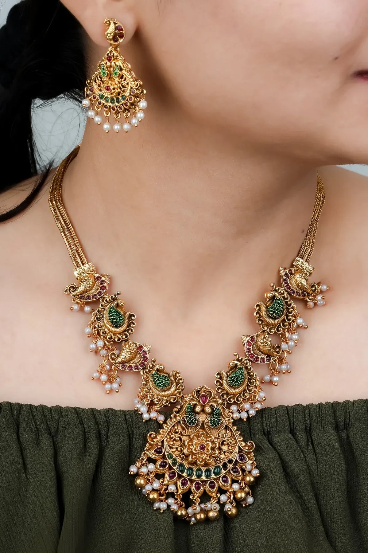 Alloy Gold Jewel Set! Perfect for any occasion, this elegant set features a necklace and matching earrings that will make you stand out from the crowd. The intricate design and the lustrous gold finish add a touch of luxury and sophistication to your ensemble. Crafted with precision and attention to detail, this jewel set is made from high-quality alloy, ensuring durability and long-lasting shine. Whether you're attending a wedding, a cocktail party, or a special event, this jewel set will complement your outfit, making you look and feel like a true queen. Channel your inner diva and embrace the beauty of this VIHAA Jewellery Alloy Gold Jewel Set!
