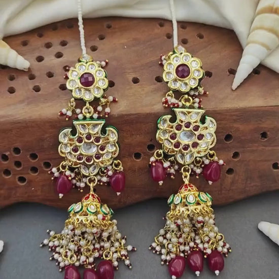 Kundan Beautiful High Gold Polish Party Wear Ruby Earrings