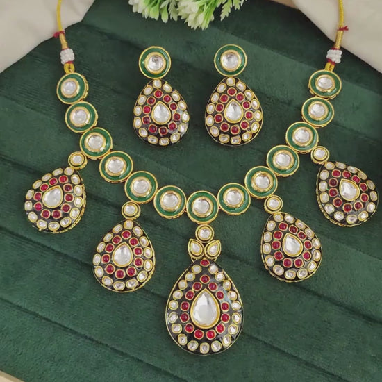Kundan Jewellery High Gold Polish Kundan Stone Party Wear Necklace Set