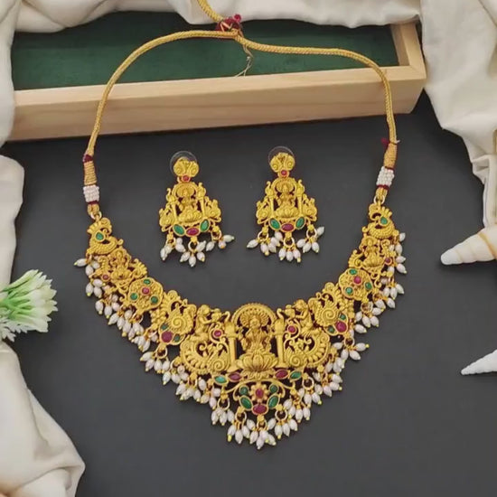 Lakshmi Temple Jewelry Set in Matte Gold Finish